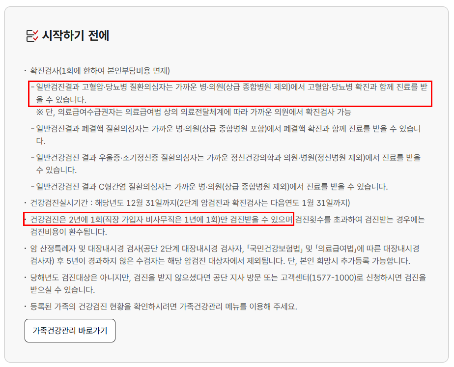- 검진기간은 해당연도 12월 31일까지 (암검진은 이듬해 1월 말까지)