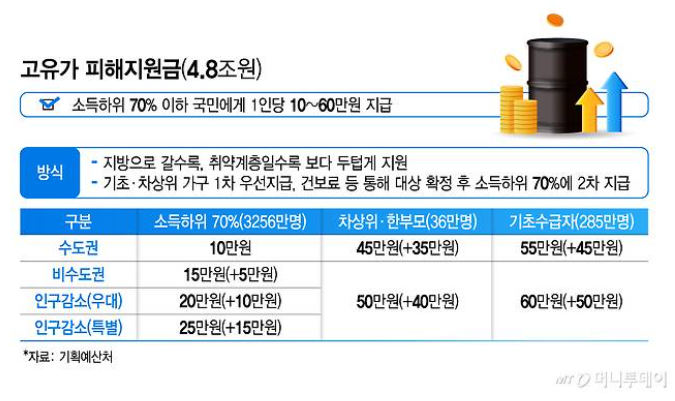 | 지원 대상 | 소득 하위 70% 국민 약 3,256만 명 |