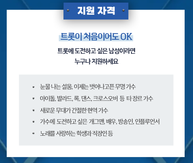 ‘무명전설’은 2025년 11월 MBN에서 첫 방송될 예정이며, 트로트를 사랑하는 남성이라면 경력과 상관 없이 누구나 도전하실 수 있는 오디션입니다.