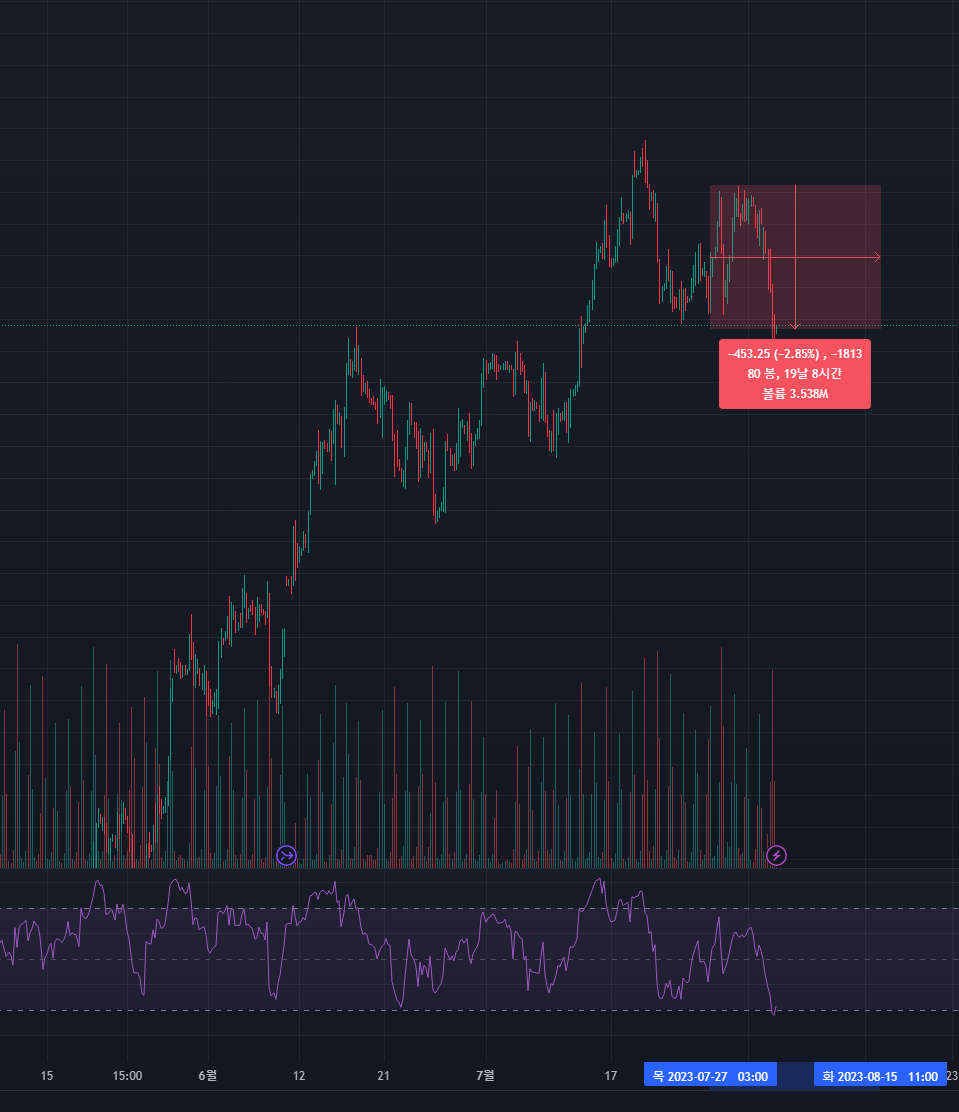 - 항상 그래왔듯, 악재 뒤에 반등이 있을 것으로 생각하여 차트를 지켜본 후 충분히 하락한 것을 확인하고 투자에 들어간다.