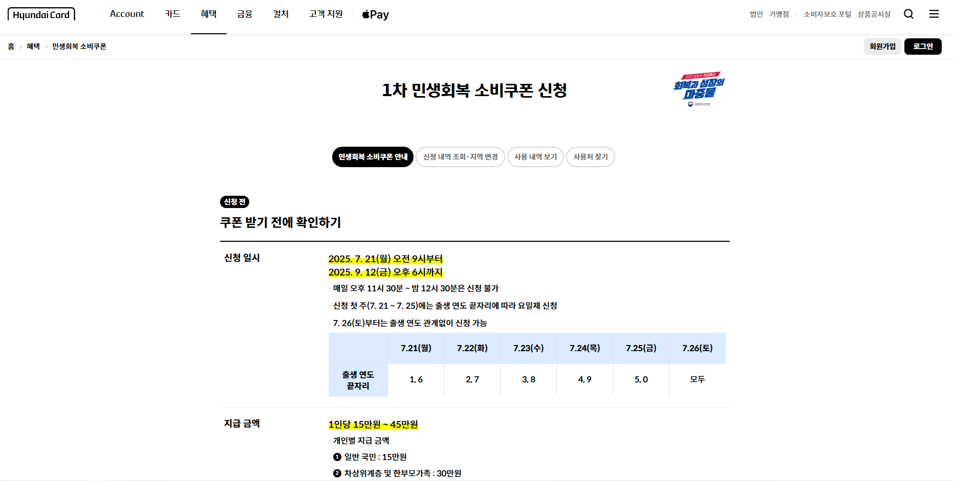 | 1차 | 2025.7.21~9.12 | 전 국민 | 15만~40만 원 (계층별 차등) |