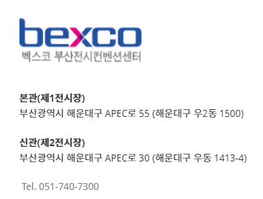 - 장소 : 부산전시컨벤션센터 벡스코(BEXCO)