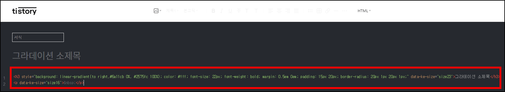 3. 제목 부분에 내가 원하는 서식의 이름을 정한 뒤 기입합니다. 예를 들어 "그라이데이션 소제목"