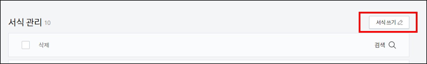 2. 서식관리 화면에서 서식쓰기에 들어갑니다.