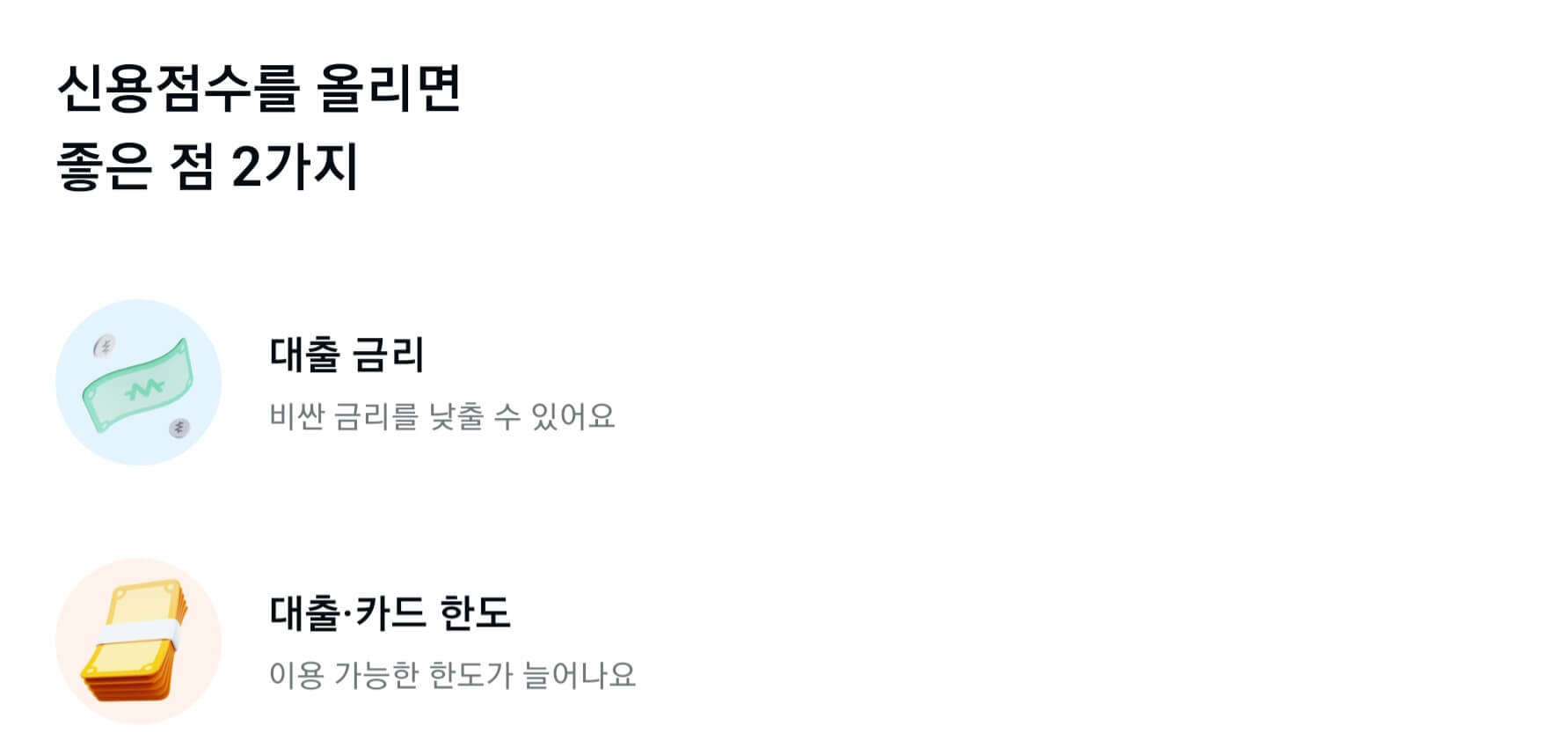 - 신용점수 600점 미만 : 금융권에서 돈을 빌리거나, 경제활동에 있어 금리적인 혜택을 못 받을 수 있음