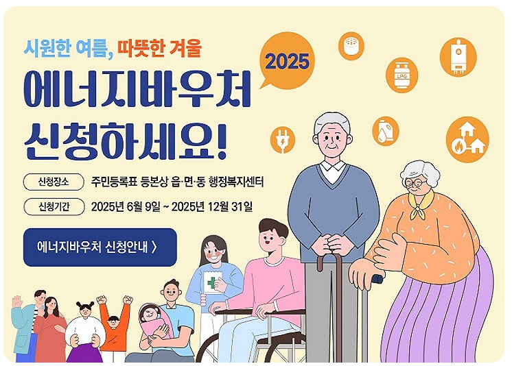 에너지바우처는 정부가 저소득층과 에너지 취약계층을 대상으로 제공하는 계절별 에너지 비용 지원 제도입니다. 전기요금, 도시가스, 연탄, 등유, LPG 등의 에너지 비용을 절감할 수 있도록 돕는 정책입니다.