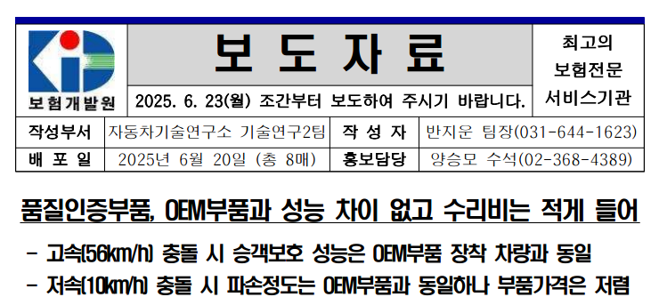 | 소비자 영향 | 순정 부품 사용 시 차액 본인 부담 가능성 |