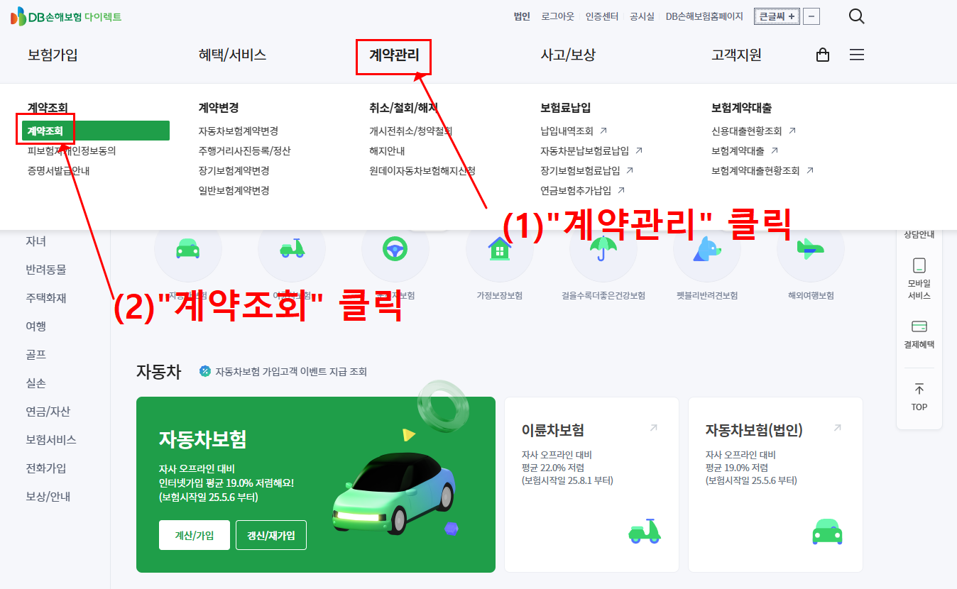 - 📌 DB손해보험 다이렉트 – 공식 페이지 / 앱 또는 홈페이지 → '계약 조회'