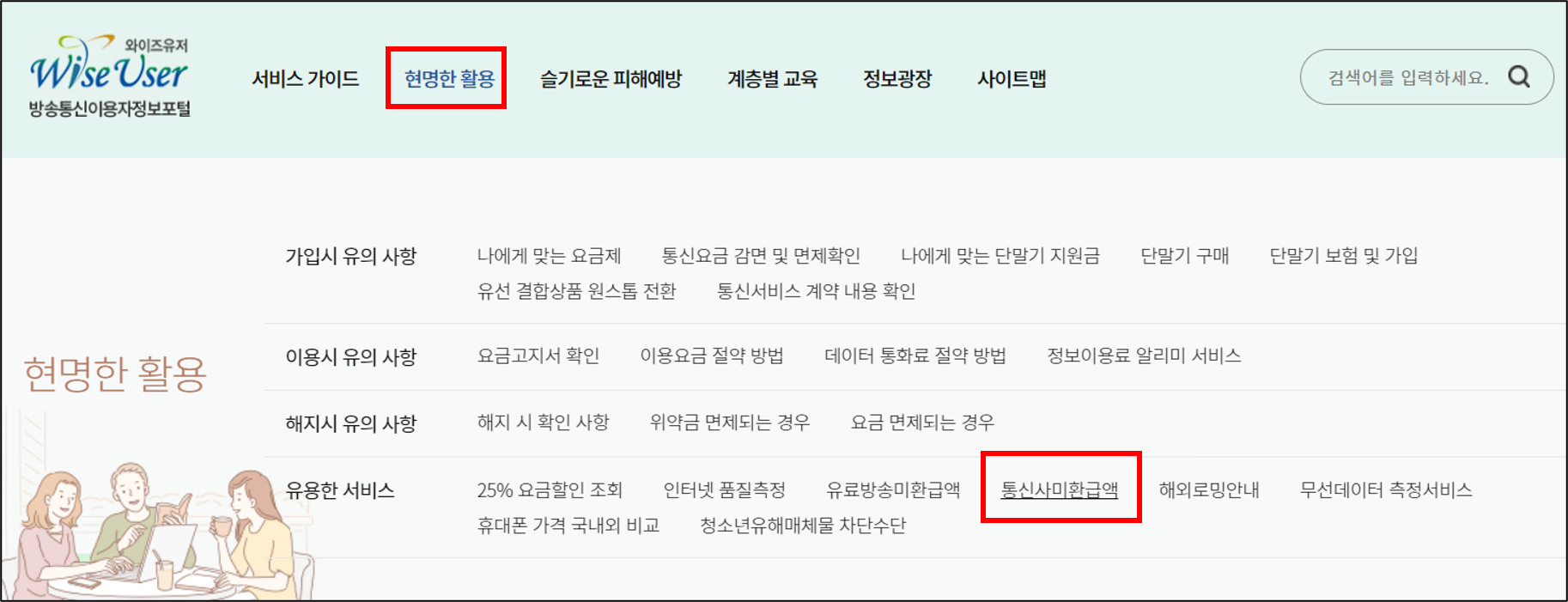 (2) 현명한 활용 탭에서 통신사미환급액을 클릭합니다.