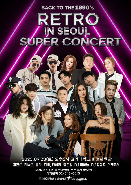 추억의 1990년대 가수들이 출동하는 '2023 레트로 슈퍼콘서트 in 서울' 콘서트가 이루어질 예정입니다! 와아 너무 기대됩니다. 그때 그 시절 노래만 듣고 있어도 과거로 돌아간 듯한 느낌을 주는 추억의 노래들이 많은 90년대였는데요, 그 시대를 주름잡았던 가수들이 이번에 합동 콘서트를 연다고 합니다! 이번 콘서트는 서울시작으로 대구까지 진행할 예정인데요. 출연가수들과 콘서트 일정 예매 방법 등을 알아보겠습니다.