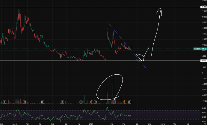 - 차트분석: 최고점 이후 지속 하락 중이며, 추세선 부근에서 반등 또는 하락 여부가 갈릴 수 있음. 거래량 패턴을 확인해 진입 시점을 판단해야 함. 자세한 분석과 타이밍은 상세 분석글을 참고하세요.