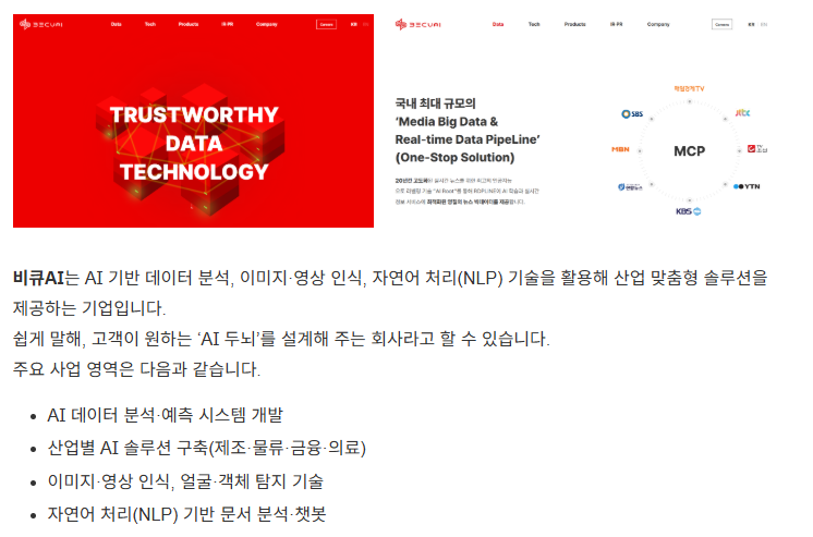 비큐AI는 제조·물류·금융·의료 등 산업 맞춤형 AI 솔루션을 제공하는 기업입니다.