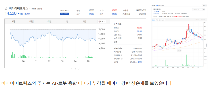 4. 비아이매트릭스|로봇·AI 융합 대표주