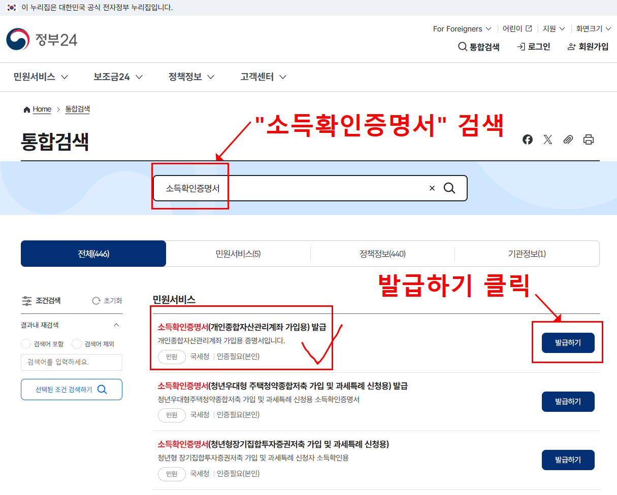 - 정부24 → 소득확인증명서(ISA가입용) 발급 미리 준비