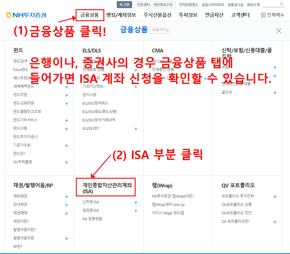- ‘ISA 계좌 개설’ 메뉴 선택